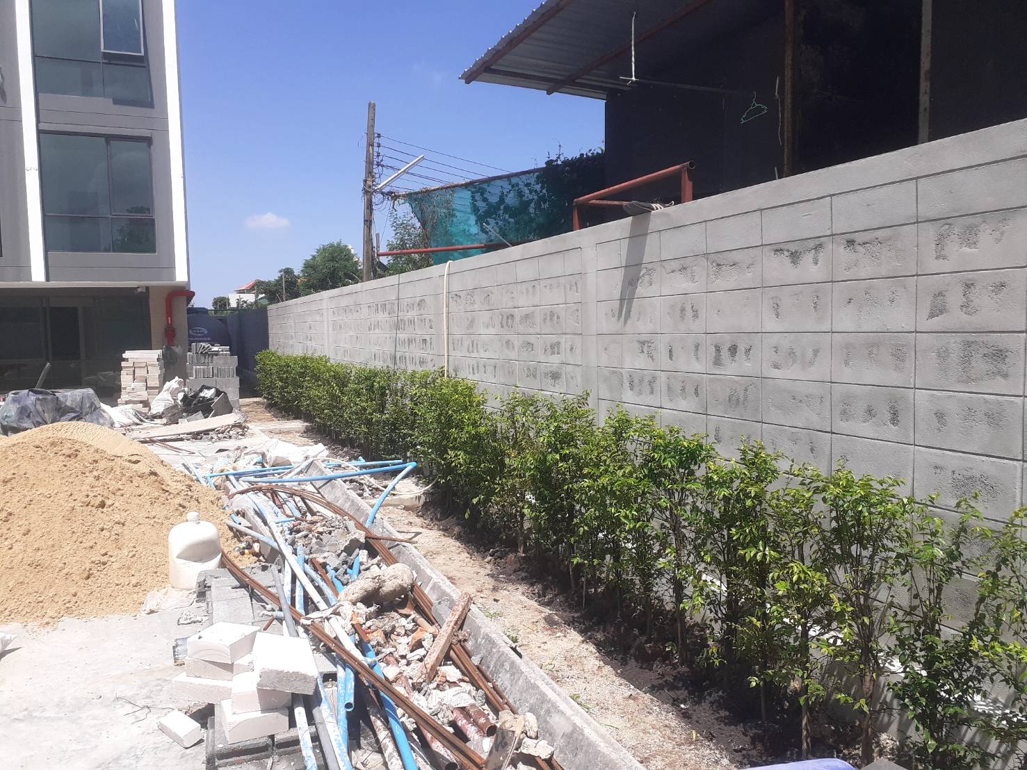 งานเทถนนหน้าโครงการและก่อกำเเพงรั้ว
